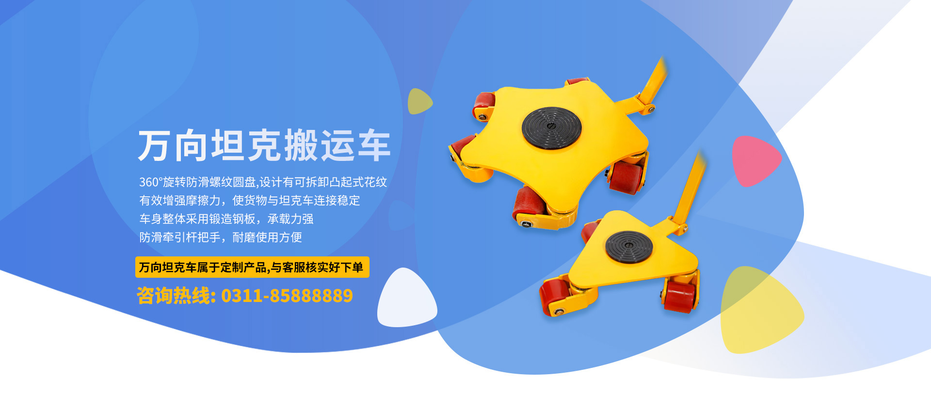 高鵬機械專業生產膠皮輪、鋼輪、尼龍輪系列各噸位型號搬運小坦克車;